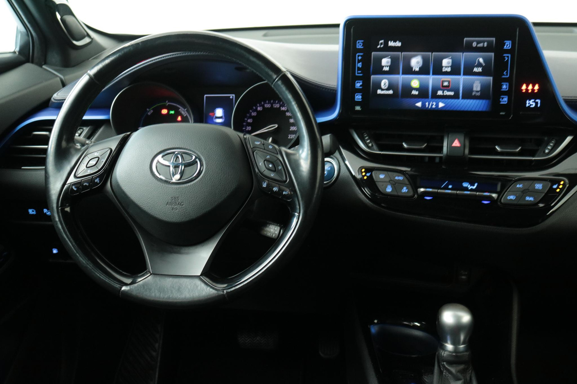 Zeer complete Toyota C-HR 1.8 Hybrid Bi-Tone Plus uitvoering in de stoere Bi-tone kleurencombinatie "Metalstream Grey" metallic met zwart dak. Wij hebben bijna alle onderhoudsbeurten uitgevoerd. Ook is de C-HR royaal uitgevoerd met opties en extra's zoals: parkeersensoren voor en achter, navigatie, volledige Bi-tone lederen bekleding met een lendensteun op de bestuurderstoel, Bluetooth, parkeercamera, dode hoek waarschuwing in de buitenspiegels, Keyless Entry met Keyless Start, 18" lichtmetalen velgen, JBL audiosysteem met subwoofer (af-fabriek), stoelverwarming en nog veel meer!