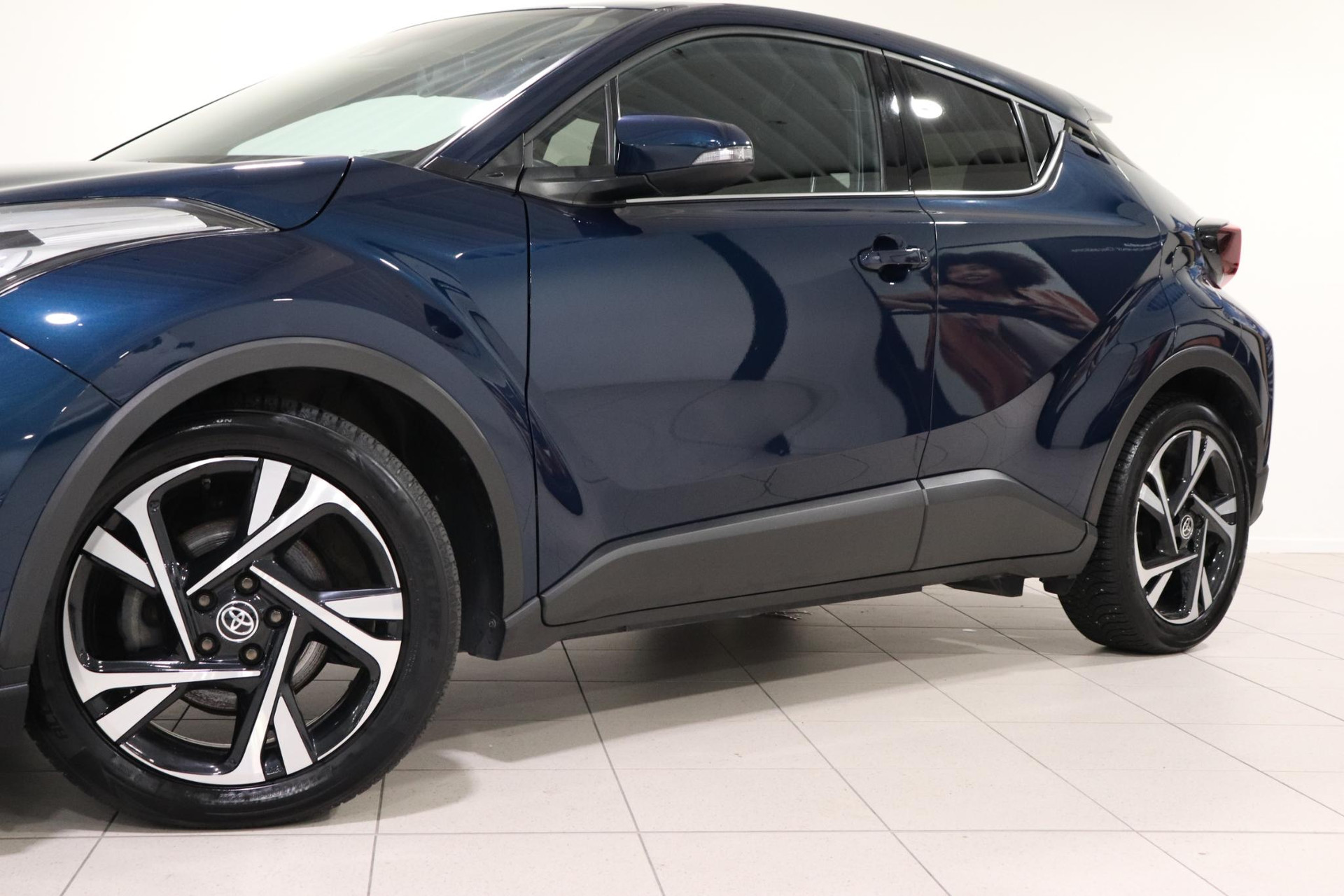 Jonge CHR 1.8 Hybrid Style Limited  in de kleur Dark teal metallic. Deze Coupe High Rider is voorzien van Stoelverwarming, navigatie systeem, Blind spot monitor, parkeersensoren voor en achter, Adaptive cruise control, deels lederen bekleding, Apple CarPlay / Android auto, parkeerhulp camera en nog veel meer!