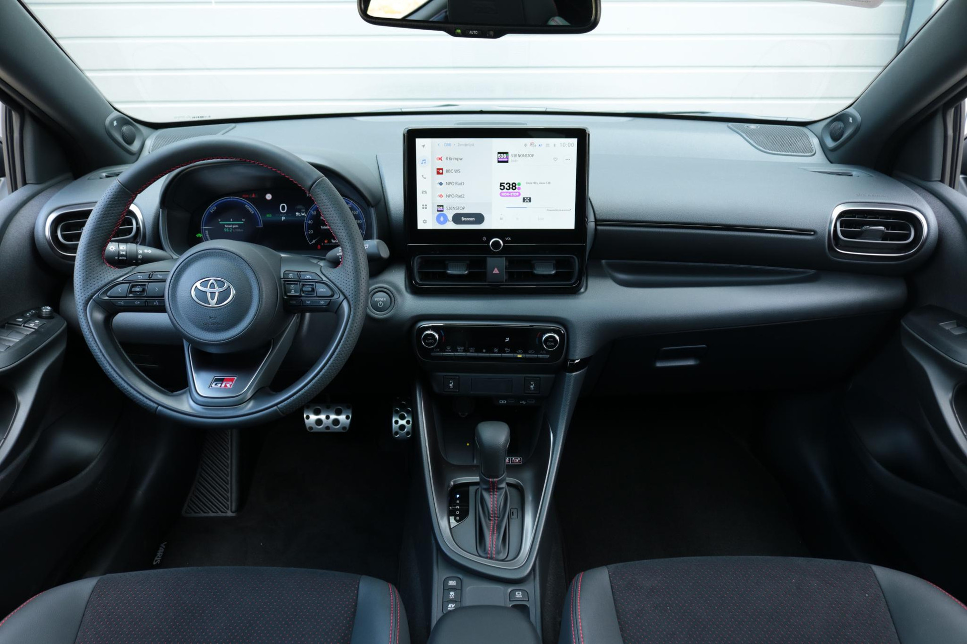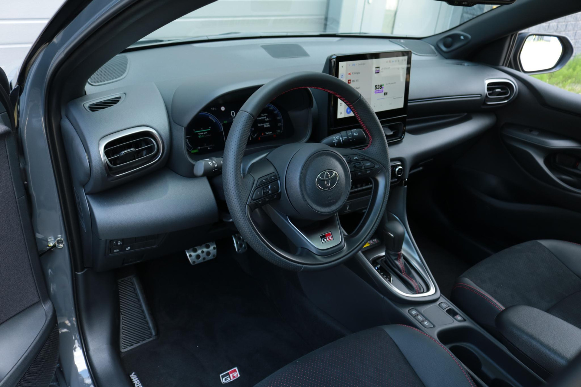 Deze super gave Toyota Yaris Hybrid 130 in de sportieve GR-Sport uitvoering. Door het mooie contrast tussen de kleur Storm Grey + Solid Black ziet de Yaris er erg strak uit! In combinatie met het GR-Sport Plus Pack zit de Yaris vol met leuke opties zoals: Panorama dak, Stoelverwarming, Stuurverwarming, Draadloos Apple Carplay & Android Auto, Parkeersensoren met remfunctie, Blind Spot Monitor, Automatisch inklapbare buitenspiegels,18 inch lichtmetalen velgen, Digitaal instrumentenpaneel, Half lederen bekleding, Donkere hemelbekleding en nog veel meer!